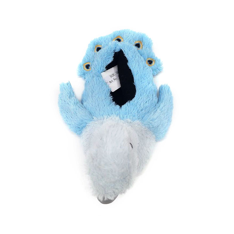 Cree los deslizadores animales lindos suaves para requisitos particulares de los deslizadores del pavo real del pavo real de la felpa del algodón de los pp
